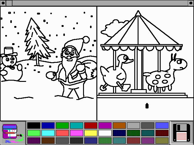 1110-DI Une disquette Freeware. Nom : FUNCOLOR (Aperdyne) Matière : coloriage. Niveau : maternelle, CP. Album de dessins à colorier avec palette de 30 couleurs. |