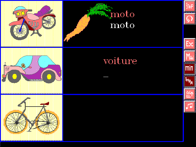 2110-JX Une disquette Freeware. Nom : ABC (Rulhmann D.) Matière : lettres, mots, chiffres, nombres. Niveau : maternelle, CP et plus. Jeux avec 26 choix d'exercices. |
