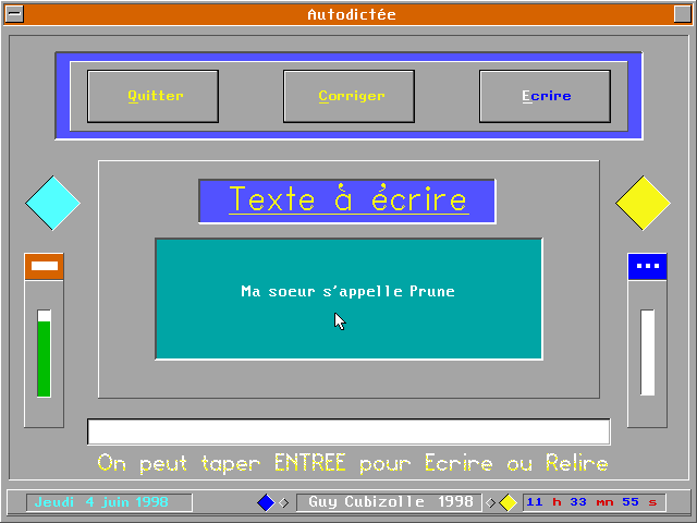3112-DI Une disquette Freeware. Nom : DIVERS ECOLE (Cubizolle G.) Matière : français, jeux, util.. Niveau : école. Disquette comprenant : |