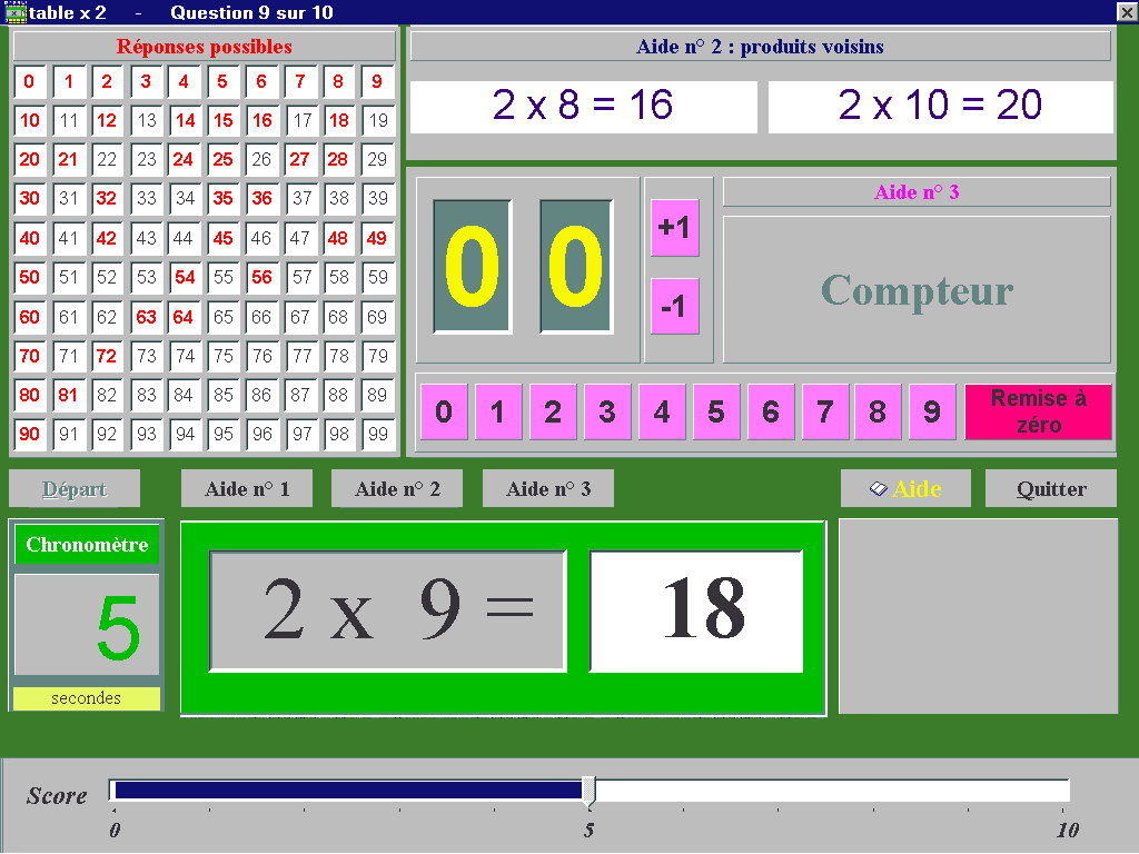 3622-MA Une disquette Shareware limité. Nom : TABLE99 (Arc-en-logiciels) Matière : maths. Niveau : école, cycle 3. " Connaître les tables de multiplication est indispensable pour obtenir une technique opératoire rapide et sûre de la mutiplication et de la division. " Six modules apportent une aide efficace pour leur apprentissage, leur consolidation et leur contrôle. |