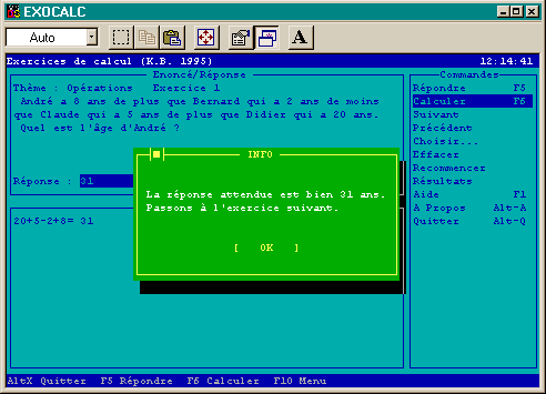 4112-MA Une disquette Freeware. Nom : IMAGÉO / EXOCALC (Kostrzewa B.) Matière : maths. Niveau : primaire, collège. Ensemble piloté par un menu et comprenant |
