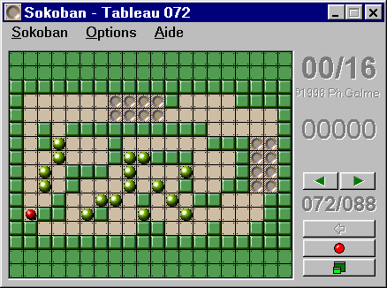 4224-JX Une disquette Freeware. Nom : SOKOBAN (Galmel Ph.) Matière : jeu. Niveau : école, collège, tout public. Sokoban est le casse-tête bien connu et apprécié pour ses qualités formatices (anticipation). Il s'agit de pousser les boules vers les cases creuses à l'aide de la boule rouge. Déplacement avec les fléches ou la souris, [Backspace] annule le dernier coup. Le programme mémorise un certain nombre de coups, le plateau est reconfigurable. |
