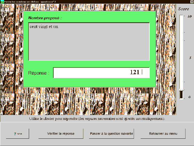 4411-MA Une disquette Shareware. Nom : NOMBRES 97 (Arc-en-logiciels) Matière : maths. Niveau : primaire, 6ème. Logiciel d'écriture des nombres en chiffres ou en lettres pour les cycles 2 et 3, 5 niveaux, paramétrables (nombre d'essais). Bilan, éditeurs de liste d'élèves. Version d'évaluation. |