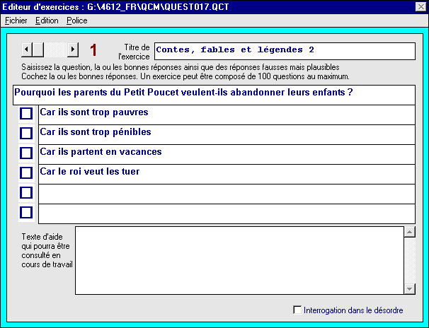 4612-FR Une disquette Shareware limité. Nom : WEXR (Campaner J.M.) Matière : français, maths, divers. Niveau : primaire, collège. Sept exerciseurs et programme de reconstitution de textes, avec éditeur pour travail individuel ou en groupe (nombreux exercices fournis). |