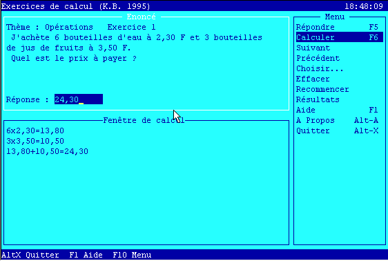 6115-MA Une disquette Freeware. Nom : MATKO (Kotstrzewa B.) Matière : maths. Niveau : collège, lycée. - TVMATHS boîte à outils mathématiques évaluateur, traceur de fonctions, etc. |