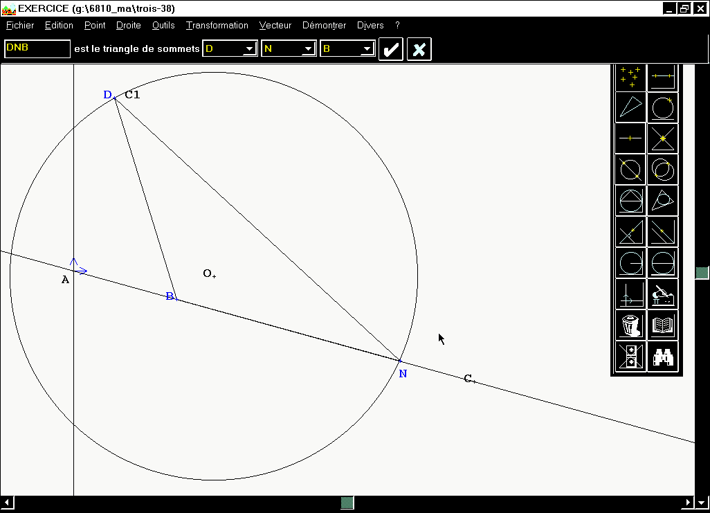 6810-MA Une disquette Version de démonstration limitée. Nom : HYPOTHÈSES (Gressier J., CDE) Matière : maths. Niveau : collège, lycée. Construction et démonstration en géométrie pilotées par un moteur d'inférences réalisé en Prolog capable d'analyser le travail de l'élève et de lui signaler que son tracé est impossible voire lui dire pourquoi. Nombreuses fonctionnalités. |