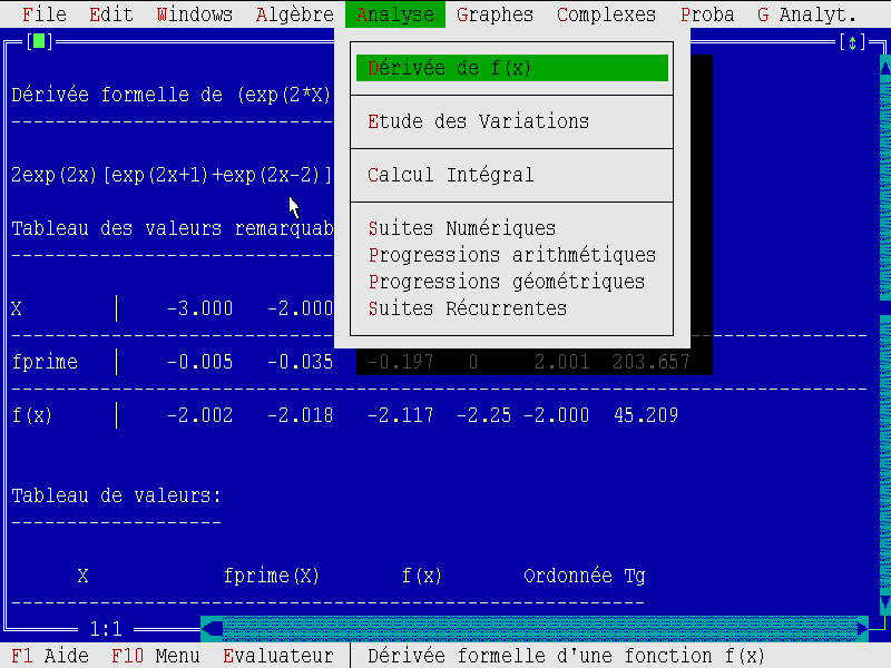 7710-MA Une disquette Shareware limité. Nom : TVMB / TVME (Bettevaux P.) Matière : maths. Niveau : lycée, classes prépa, deug. Dérivation, polynômes, courbes, géométrie analytique, équations, statistiques etc. |