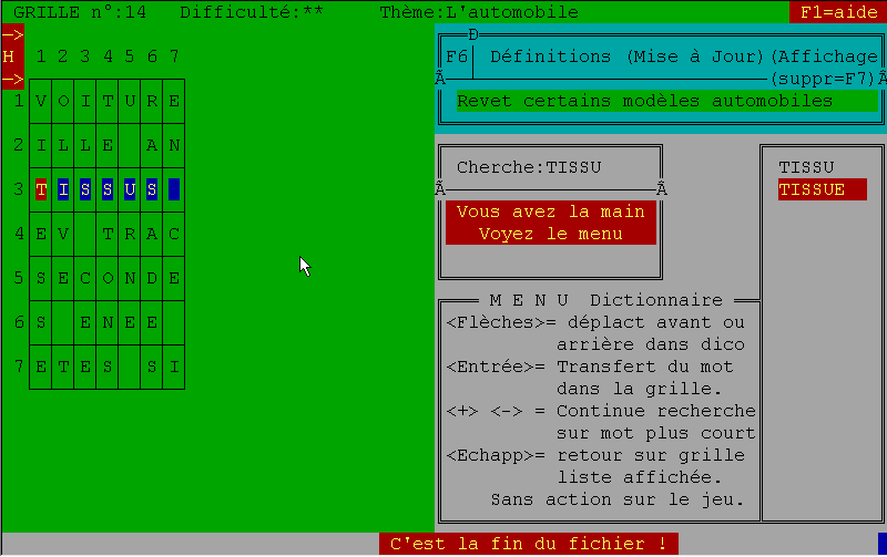 9511-JX Une disquette Shareware. Nom : MOTS CROISÉS (Nadé R.) Matière : jeu. Niveau : tout public. Le logiciel propose 2 fonctions : |