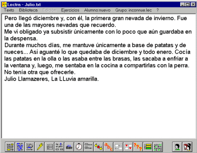 6421-ES Deux disquettes Shareware. Nom : LECTRA-ESP W95 (Brun M.) Matière : espagnole, lecture. Niveau : collège, lycée. Lectra est un logiciel d'entraînement systématique à la lecture, qui propose un ensemble d'exercices variés : closure, reconstitution de textes, lecture rapide... L'objectif du logiciel est d'améliorer un certain nombre de capacités fondamentales de l'activité de lecture. L'enseignant peut rentrer ses textes. Menus et Fichiers d'exercices en espagnole. Cette version est la mise à jour 32 bits (Windows 95 et plus), avec l'ajout de fonctionnalités, de Lectra réf. 6415-ES. |